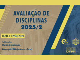 A Universidade Federal do Paraná iniciou, em 14 de janeiro, o perÃodo da Avaliação de Cursos e Disciplinas referente ao segundo semestre de 2025, pesquisa institucional que coleta a percepção dos estudantes sobre componentes curriculares, organização dos cursos e ações institucionais. Neste ciclo, a participação poderá ser registrada até 12 de março de 2026. A […]