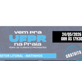 A UFPR Litoral e o CEM – Centro de Estudos do Mar, em parceria com a Diretoria de Desenvolvimento Institucional (DDI), realizarão no dia 24 de maio (domingo) o evento “Vem para a UFPR”. É um momento em que a UFPR estará de portas abertas para a comunidade, visando a apresentação dos cursos de graduação, […]