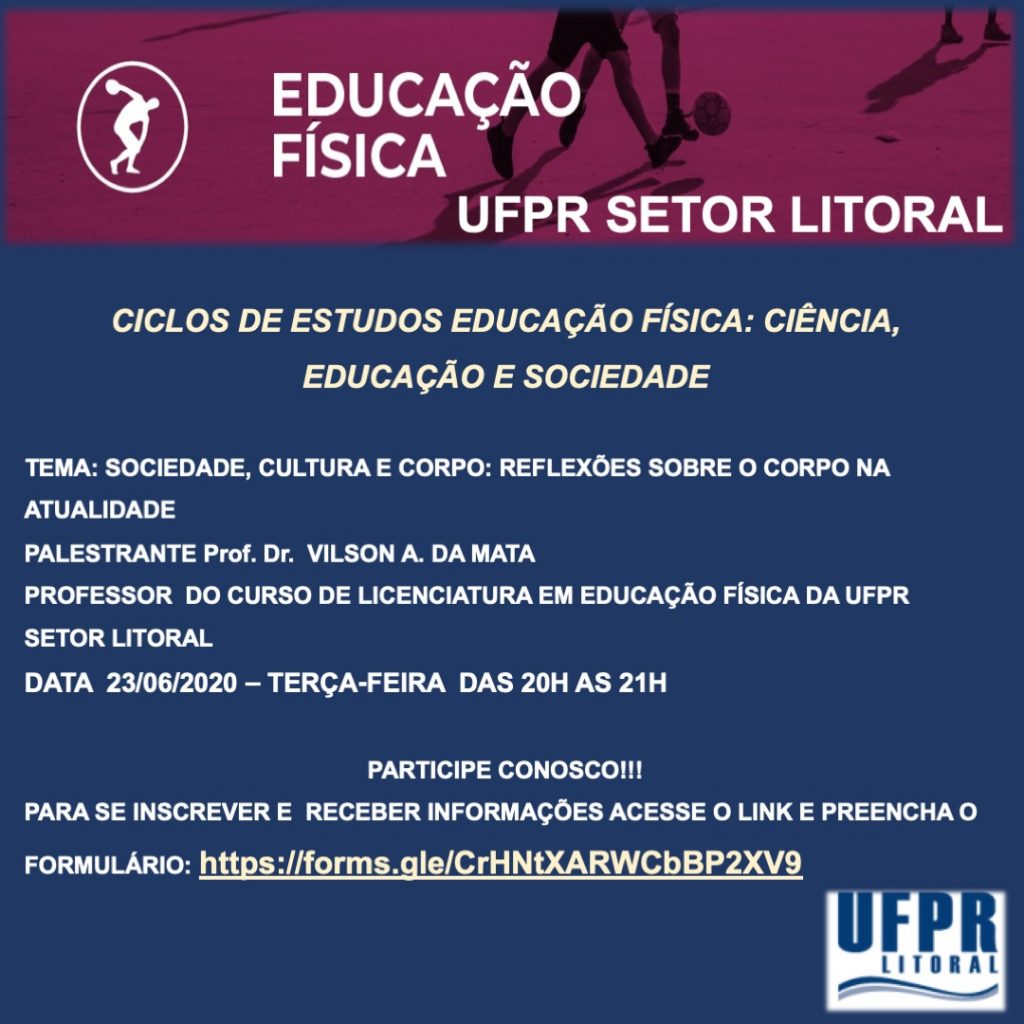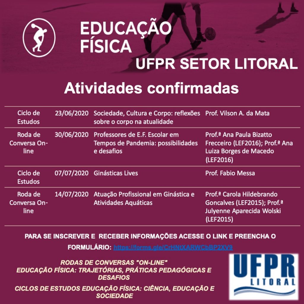 A Câmara do Curso de Licenciatura em Educação Física começa esta semana a divulgar uma sequência de atividades que ocorrerão neste período especial. As atividades consistem em encontros virtuais em formatos distintos: rodas de conversa com convidados, ciclos de estudos e palestras.