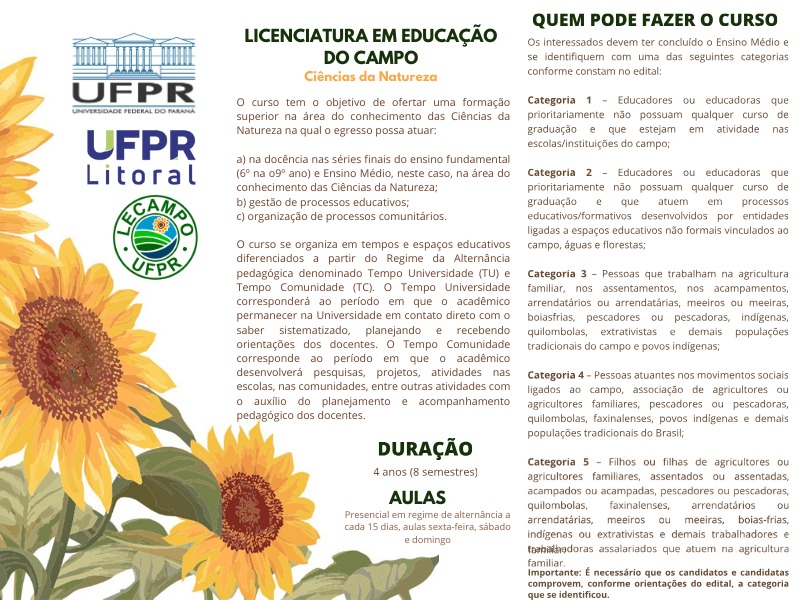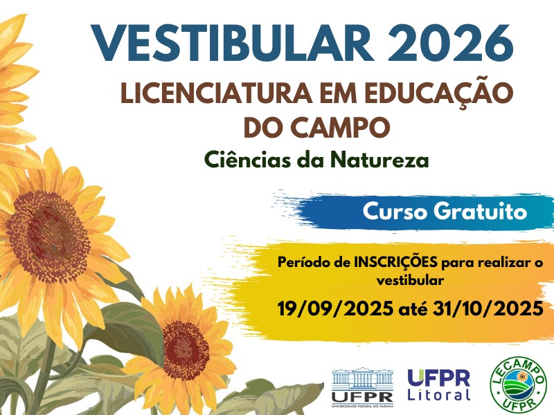 A UFPR Litoral está com inscrições abertas para seleção de bolsista cotista no Projeto Arboreto-Escola: Restinga, coordenado pelo professor Fernando Bechara. A oportunidade é voltada a estudantes dos cursos de Agroecologia, Ciências Ambientais, Ciências, Geografia ou Educação do Campo. A bolsa, no valor de R$ 700,00 mensais, tem duração de 12 meses e carga horária […]